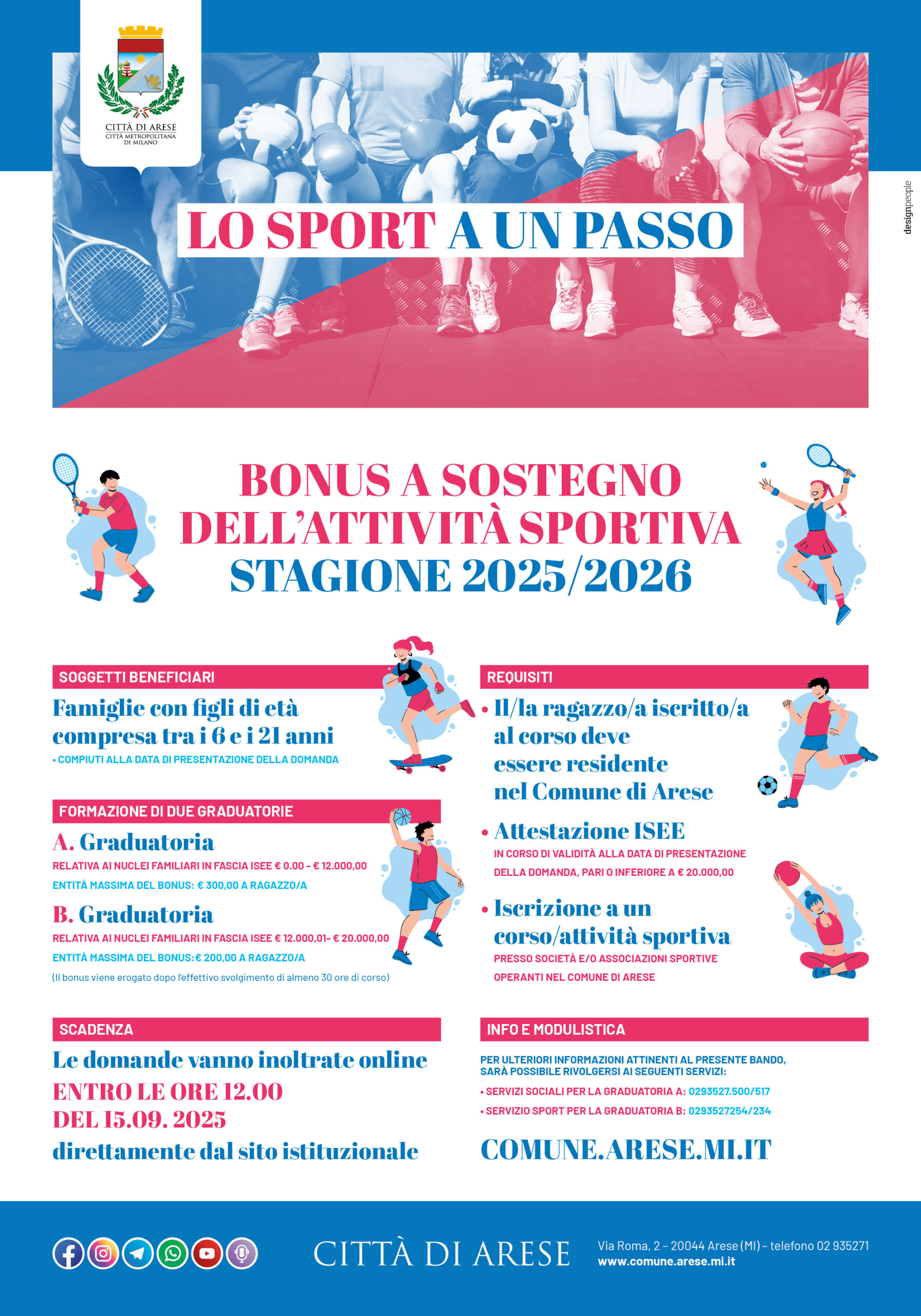 Il Comune di Arese intende dare un sostegno economico per le spese per la frequenza dei ragazzi a un corso o attività sportiva per la stagione 2025/2026.