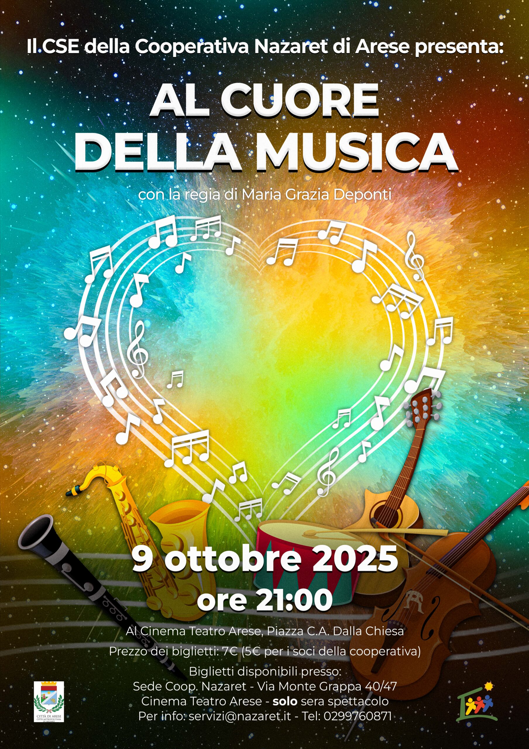 Giovedì 9 ottobre 2025, alle 21:00 al Cinema Teatro di Arese, lo spettacolo “Al cuore della musica” con la regia di Maria Grazia Deponti.