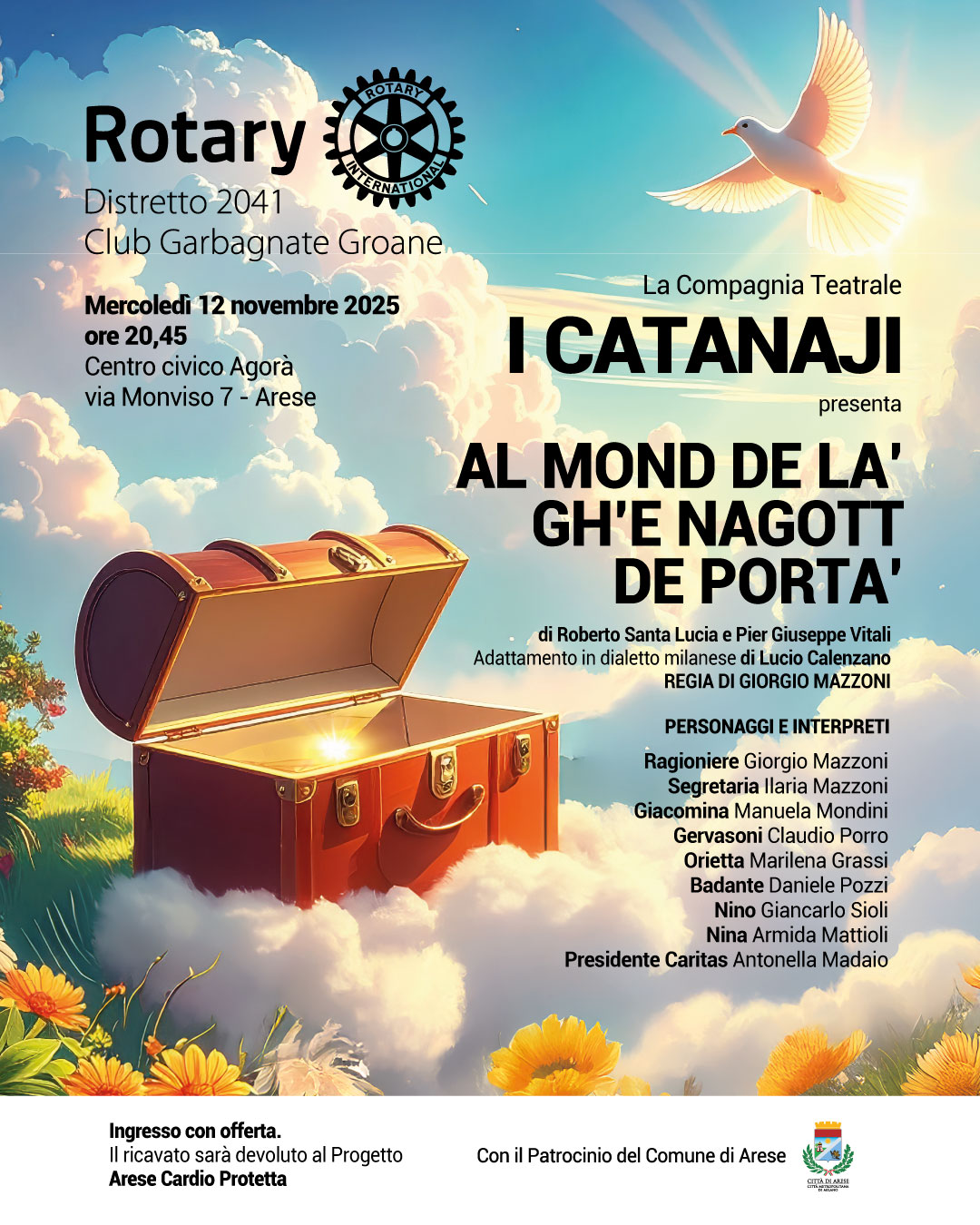 Il Rotary Distretto 2041 Club Garbagnate Groane, con il patrocinio del Comune di Arese, presenta la commedia