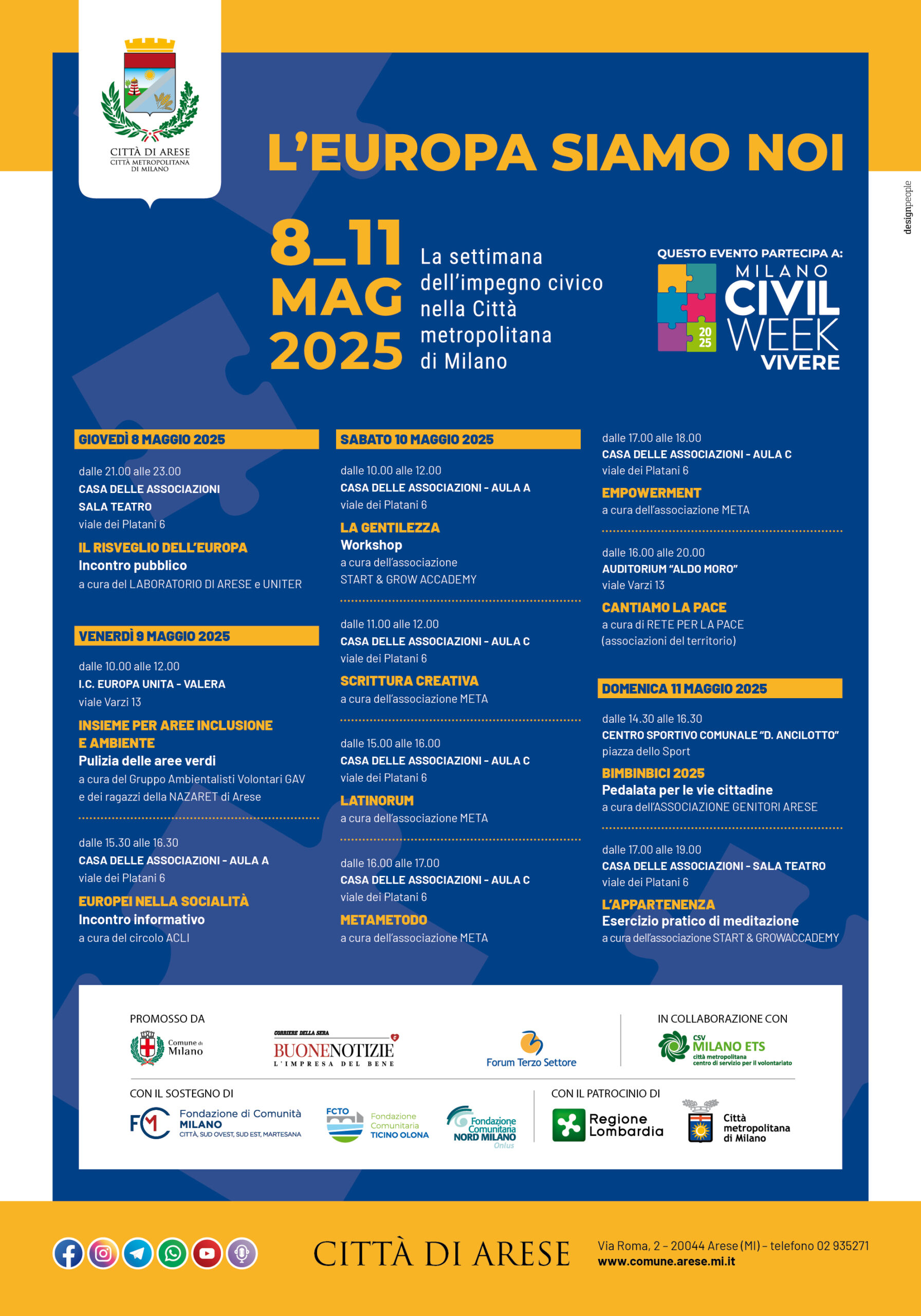 Anche quest’anno il nostro Comune partecipa alla Milano Civil Week che per il 2025 esplora il tema “L’Europa siamo noi”, proseguendo il percorso iniziato con l’art. 118 della Costituzione Italiana e il principio di sussidiarietà.