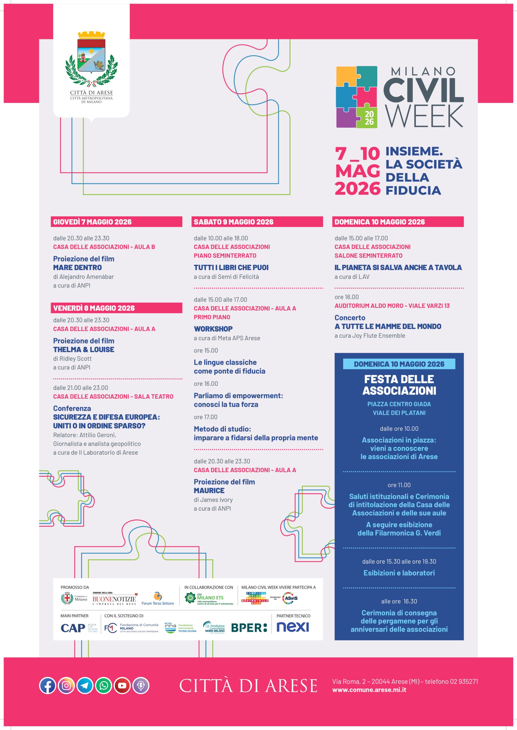 Anche per il 2026 il Comune di Arese partecipa alla Civil Week, la manifestazione milanese che celebra l’impegno civico, la solidarietà e il protagonismo dei cittadini.