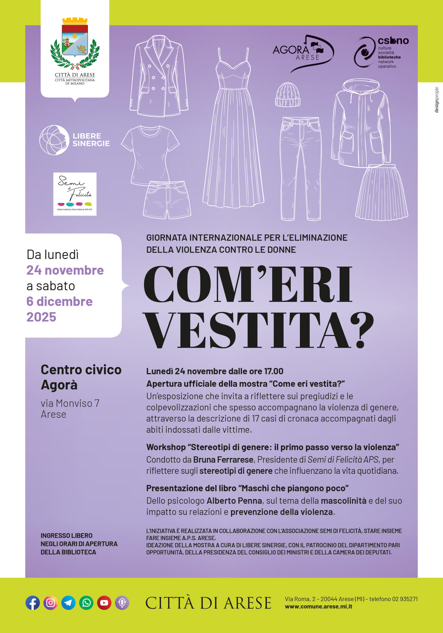 In occasione della Giornata internazionale per l’eliminazione della violenza contro le donne, da lunedì 24 novembre a sabato 6 dicembre 2025, ospiteremo la mostra “Com’eri vestita?“, un’esposizione che invita a riflettere sui pregiudizi e le colpevolizzazioni che spesso accompagnano la violenza di genere, attraverso la descrizione di 17 casi di cronaca accompagnati dagli abiti indossati dalle vittime.