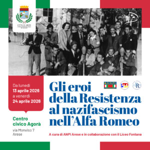 Dal 13 al 24 aprile 2026, il Centro civico Agorà ospita la mostra “Gli eroi della Resistenza al nazifascismo nell’Alfa Romeo”.