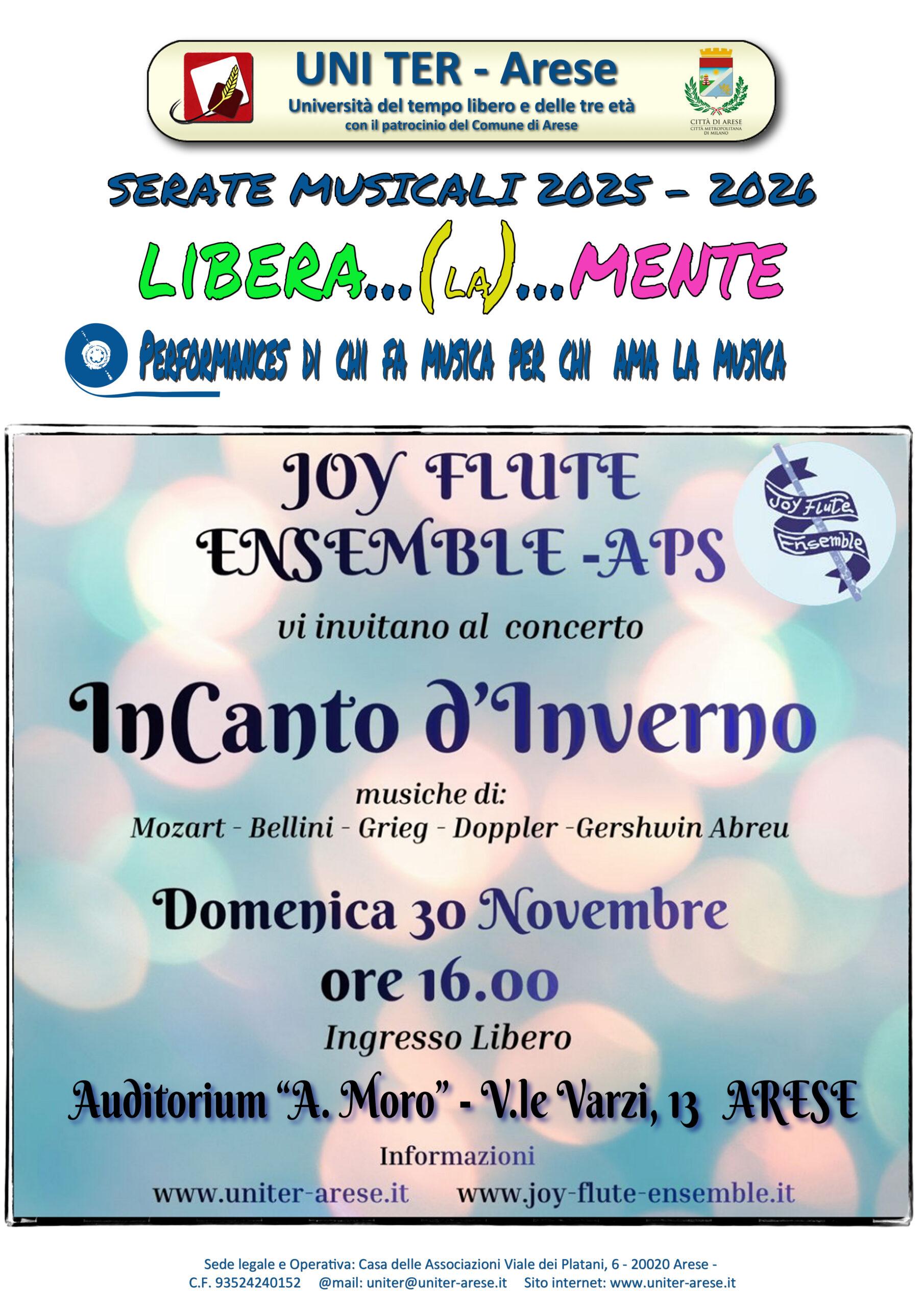 Domenica 30 novembre 2025, alle 16.00, all’Auditorium “A. Moro” (viale Varzi, 13), Joy Flute Ensemble aps vi invita al concerto InCanto d’Inverno.