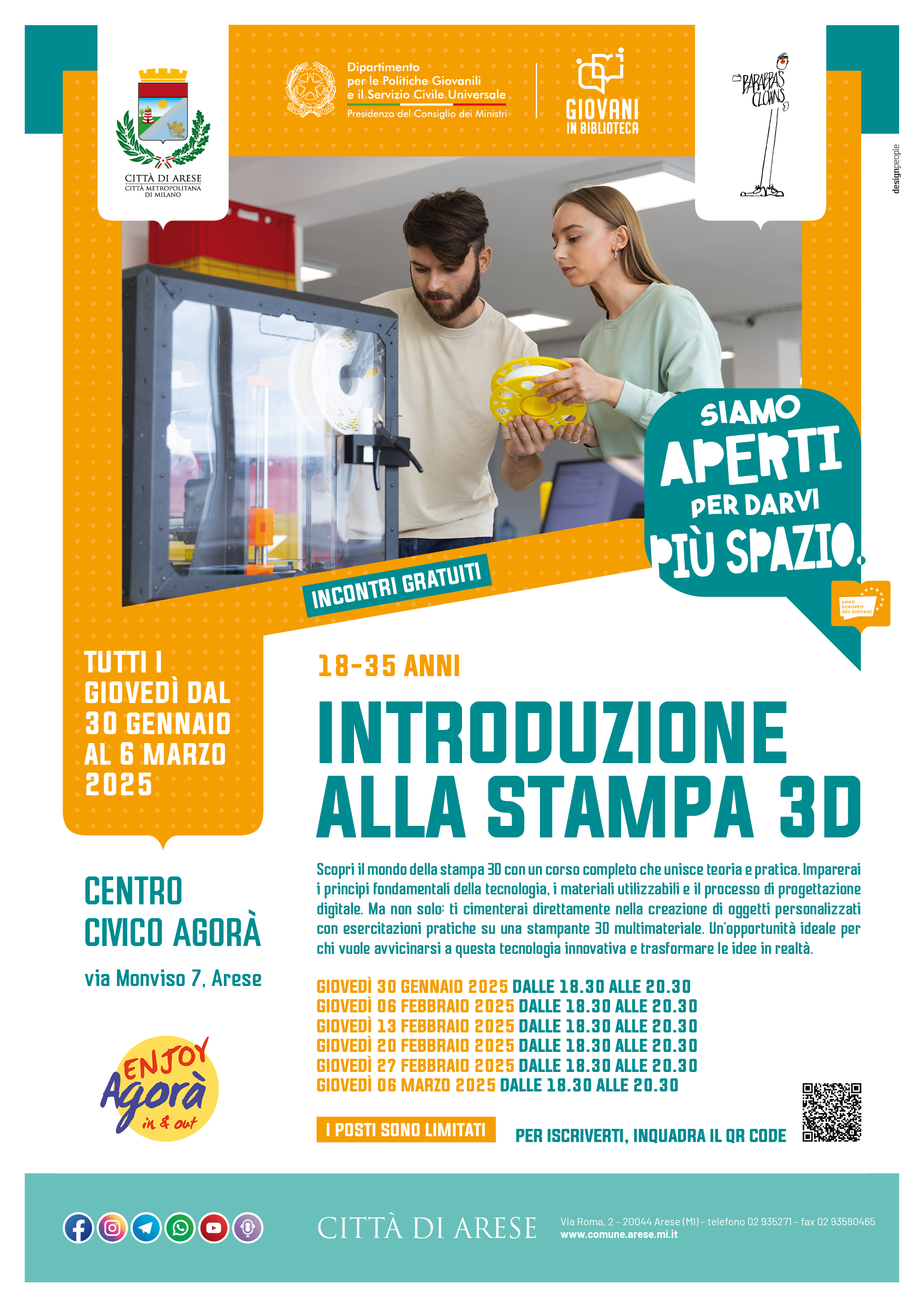 Il corso è dedicato ai giovani 18-35 anni. Gli incontri si svolgono al Centro civico Agorà (via Monviso 7) tutti i giovedì dal 30 gennaio al 6 marzo 2025, dalle 18.30 alle 20.30.