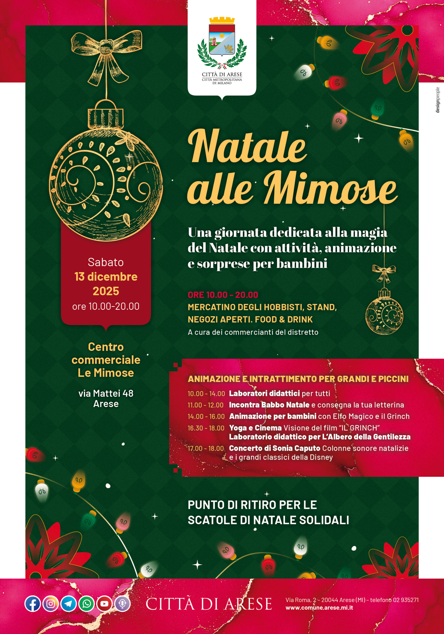 Sabato 13 dicembre 2025, dalle 10.00 alle 20.00 al Centro commerciale Le Mimose, una giornata dedicata alla magia del Natale con attività, animazione e sorprese per bambini.
