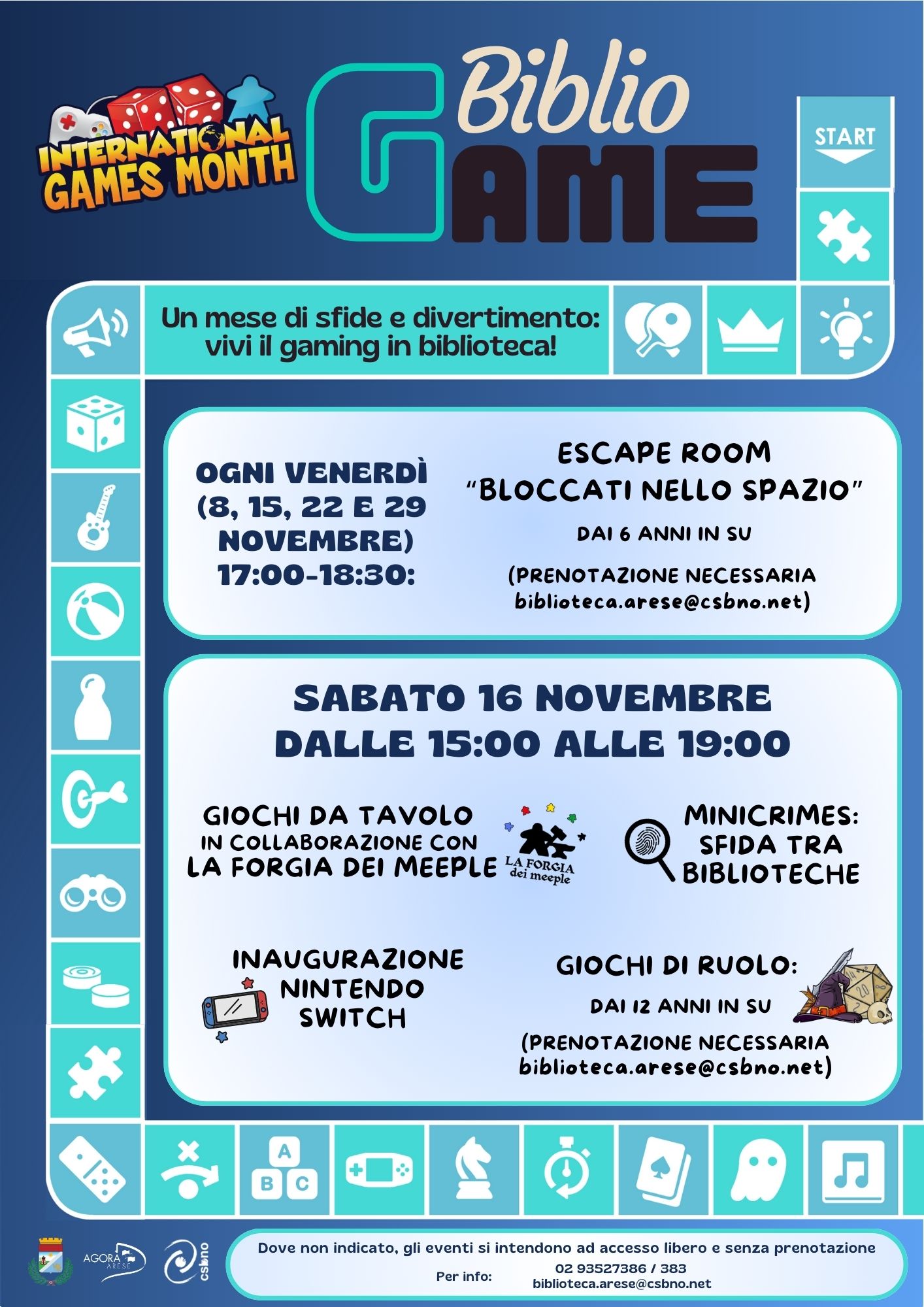 • Bibliogame – International games month edition – Sabato 16 novembre, dalle 15 alle 19