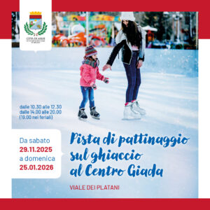 Anche quest’anno puoi divertirti sulla pista di pattinaggio su ghiaccio che resterà aperta per le festività natalizie e invernali al Centro Giada, in viale dei Platani.