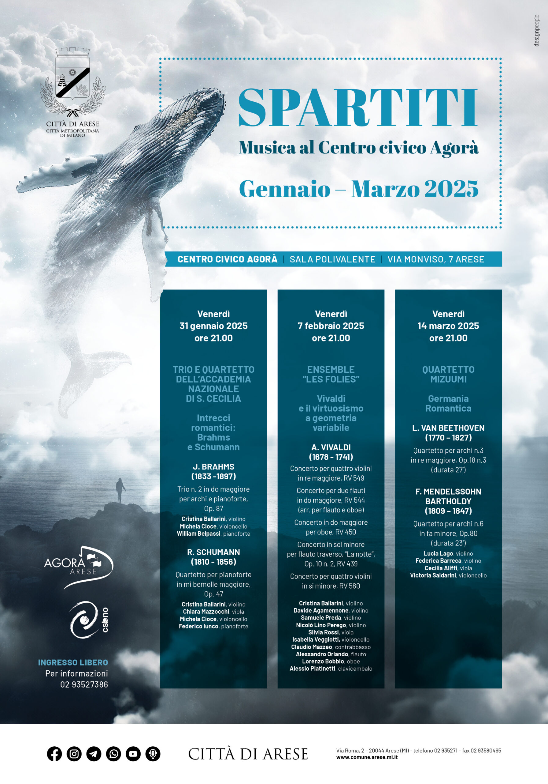 SPARTITI è rivolta ai numerosi appassionati che seguono assiduamente le proposte musicali di Arese e, allo stesso tempo, completa il ricco calendario della città, offrendo un’imprescindibile componente culturale, attraverso il linguaggio universale della musica.